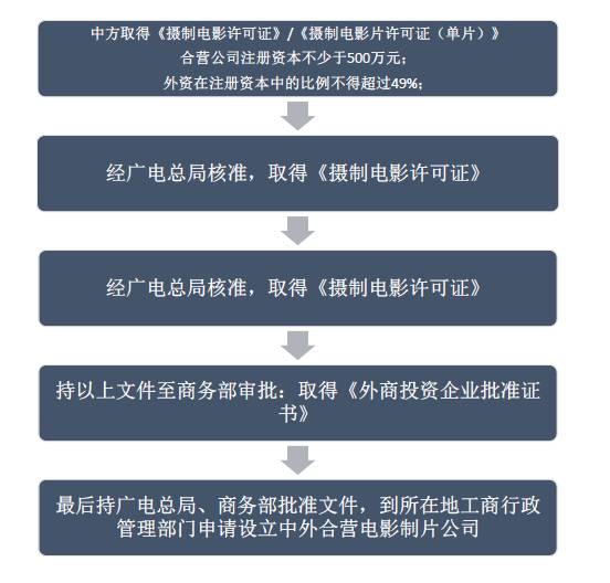 (2)中外合营电影制片公司,其设立程序复杂,如下: