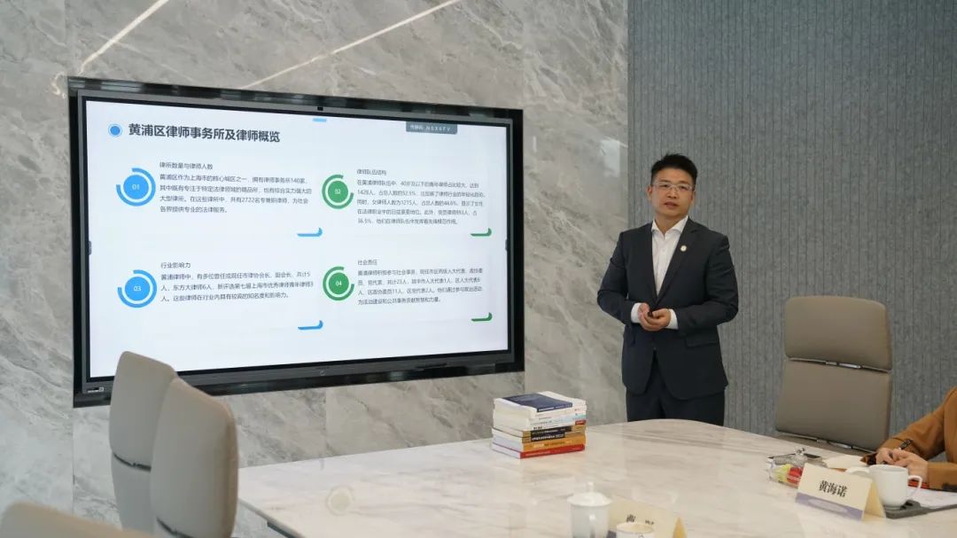 邦信阳律师事务所主任杜爱武律师对黄浦区各位领导的莅临表示欢迎,带领各位参观了邦信阳上海办公室新址,介绍了新址装修的设计理念和区域功能。