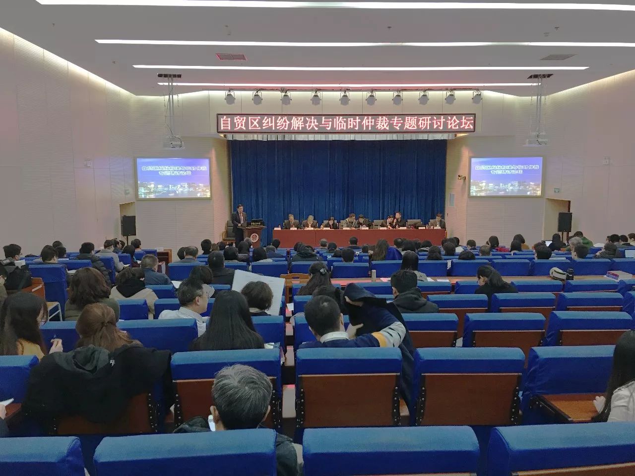 中国政法大学校长黄进、原全国人大法律工作委员会民法室副主任扈纪华、中国社会科学院国际法研究所国际经济法室主任、最高人民法院民四庭副庭长刘敬东、法律出版社总编辑孙志华、中国国际贸易促进委员会法律部部长刘超、中国海事仲裁委员会副秘书长陈波、中国仲裁法学研究会常务副秘书长陈建、陕西省经济社会发展法律服务团西安国际港务区(自贸版区)办公室主任张允光、法律出版社财经出版分社社长沈小英、法制日报社经济部主任万学忠、人民法院报总编室副主任徐光明等来自全国各地的100余名专家学者、相关部门领导、仲裁机构、教学教育界别、仲裁实务界以及媒体人士济济一堂,就自贸区纠纷解决与临时仲裁的相关议题展开研讨,分享真知灼见,献上了一场思想的盛宴。