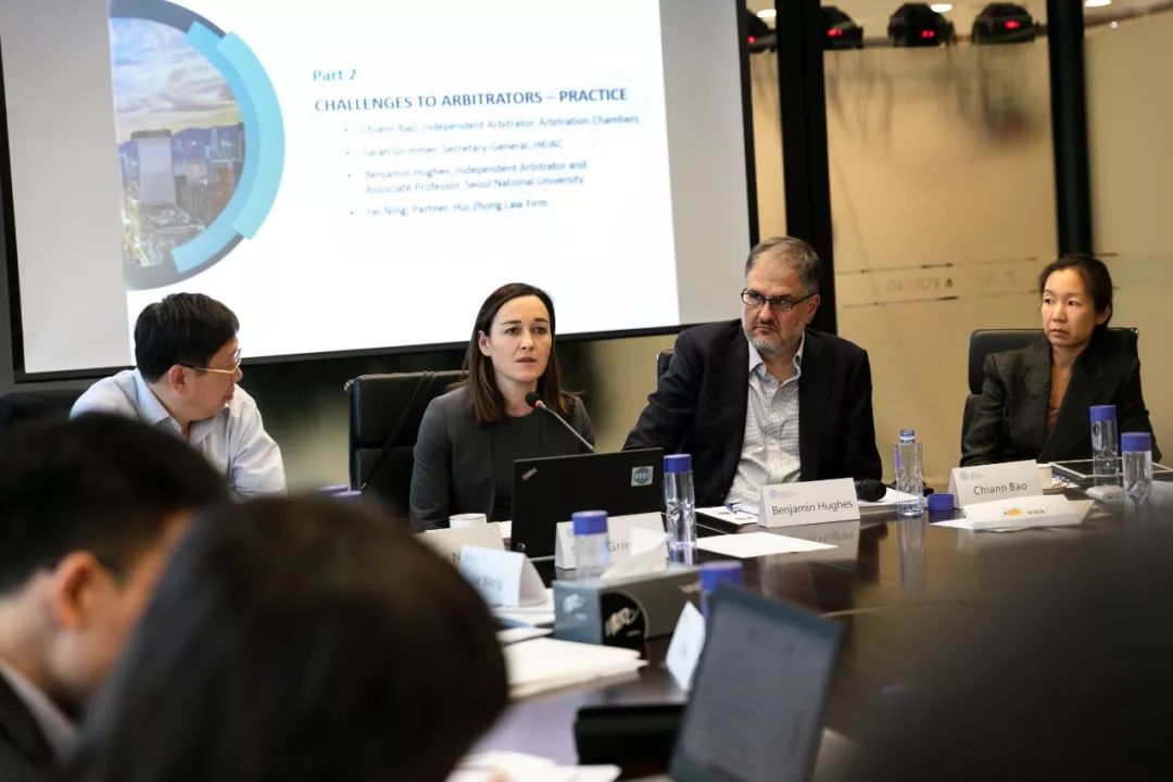 此次香港国际仲裁中心培训的主题是申请仲裁员回避的制度。Sarah Grimmer秘书长、港仲前秘书长Chiann Bao、资深仲裁员汇仲律师事务所合伙人费宁以及独立仲裁员、韩国首尔大学教授Benjamin Hughes也分别进行了讲解。最后,全体培训人员分不同小组,进行模拟案例的分析讲解培训。