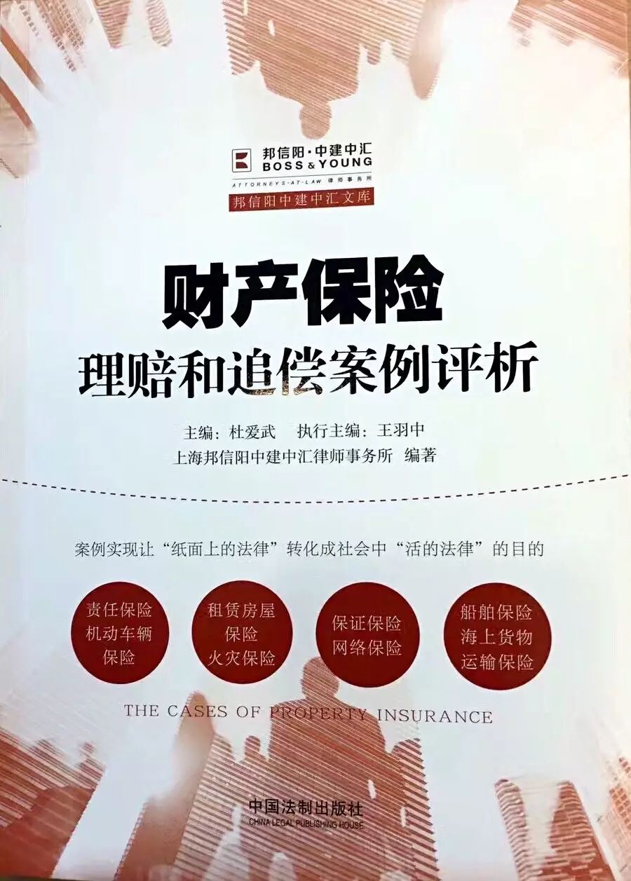 图:邦信阳中建中汇保险法团队最新编撰出版的《财产保险理赔和追偿纠纷案例评析》一书