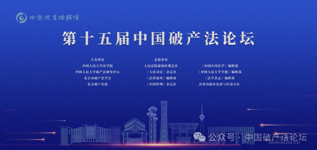 2024年10月26日-27日,第十五届中国破产法论坛在京举办。该论坛是国内破产法领域参与群体最多、最有代表性、最具权威性的破产法专题学术交流平台。