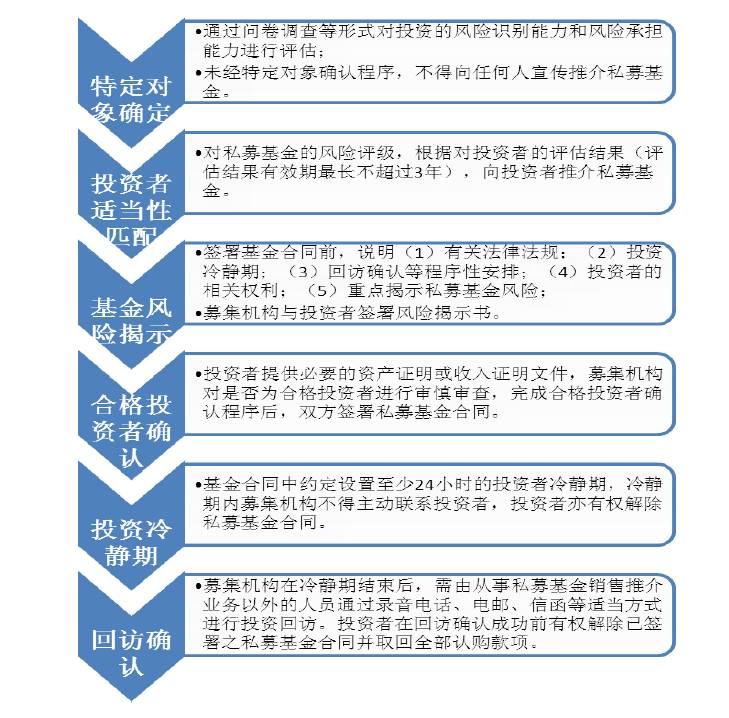《办法》将《征求意见稿》中的“特定对象调查”修改为了“特定对象确定”,该字词的调整,笔者认为是基金业协会不仅要求私募基金管理人对特定对象进行调查,对投资者的风险识别能力和风险承担能力进行评估,还要求私募基金管理人在基金募集阶段通过问卷调查等方式确定相关宣传推介的特定对象,从而确保募集对象系非公开的、特定的、符合私募基金的相关规定和要求的。