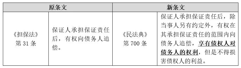 《民法典》第700条在规定保证人对债务人享有追偿权的同时,又明确规定保证人“享有债权人对债务人的权利”,确立了保证人的代位权。