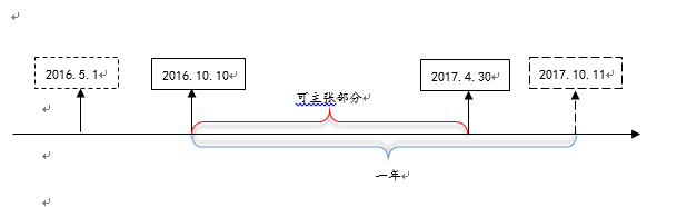 如图所示,若B于2017年10月11日才向仲裁机构提起仲裁,在用人单位提出诉讼时效抗辩的情况下,B仅能向用人单位主张自2016年10月10日至2017年4月30日之间的双倍工资差额。