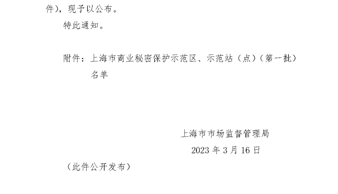 2021年11月,上海市市场监督管理局印发《关于组织开展本市商业秘密保护示范点、商业秘密保护示范站、商业秘密保护示范区培育建设的工作方案》,明确将围绕促进创新发展、服务建设高标准市场体系,加大对科技密集型行业、企业商业秘密的保护力度,深入推进本市市、区两级商业秘密保护示范区、示范站(点)建设;以标准建设为抓手,逐年滚动推进检查验收工作,渐次扩大市、区两级商业秘密保护示范区、示范站(点)范围,突出其示范引领作用,扩大示范效应,构建本市“点线面”结合的立体保护示范模式。