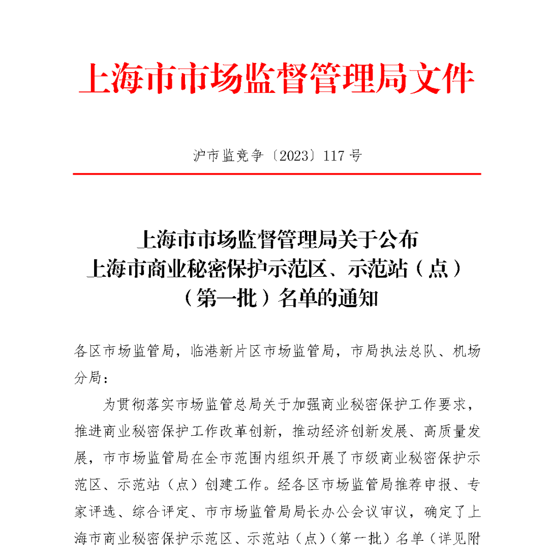 此次入选“上海市商业秘密保护示范站”,是继去年11月入选“黄浦区商业秘密保护示范站”后,上海市市场监管局对邦信阳中建中汇商业秘密保护相关法律服务水平的充分认可与鼓励。
