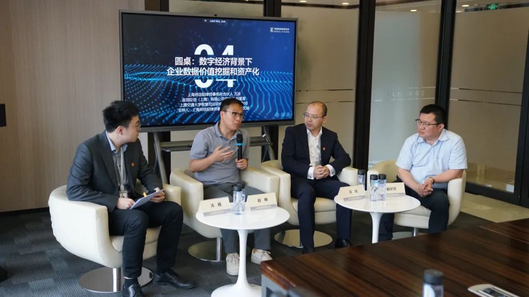 在主题分享过后,金润征信(上海)有限公司总经理赵星星、上海交通大学智慧司法研究院院长助理赵帅、邦信阳合伙人万波律师和邦信阳沈越律师,围绕“数字经济背景下企业数据价值挖掘和资产化”这一前沿问题,从企业、学术及法律实务三重视角展开分析,并就当前企业数据资产化现状和面临的法律问题做了深入探讨。