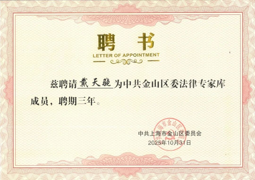 此次戴天骁律师获聘金山区相关职务,再次彰显了邦信阳律师的专业实力与社会影响力。未来,邦信阳律师事务所将以此为契机,持续发挥专业优势,为推动法治社会建设贡献更多邦信阳智慧与力量。