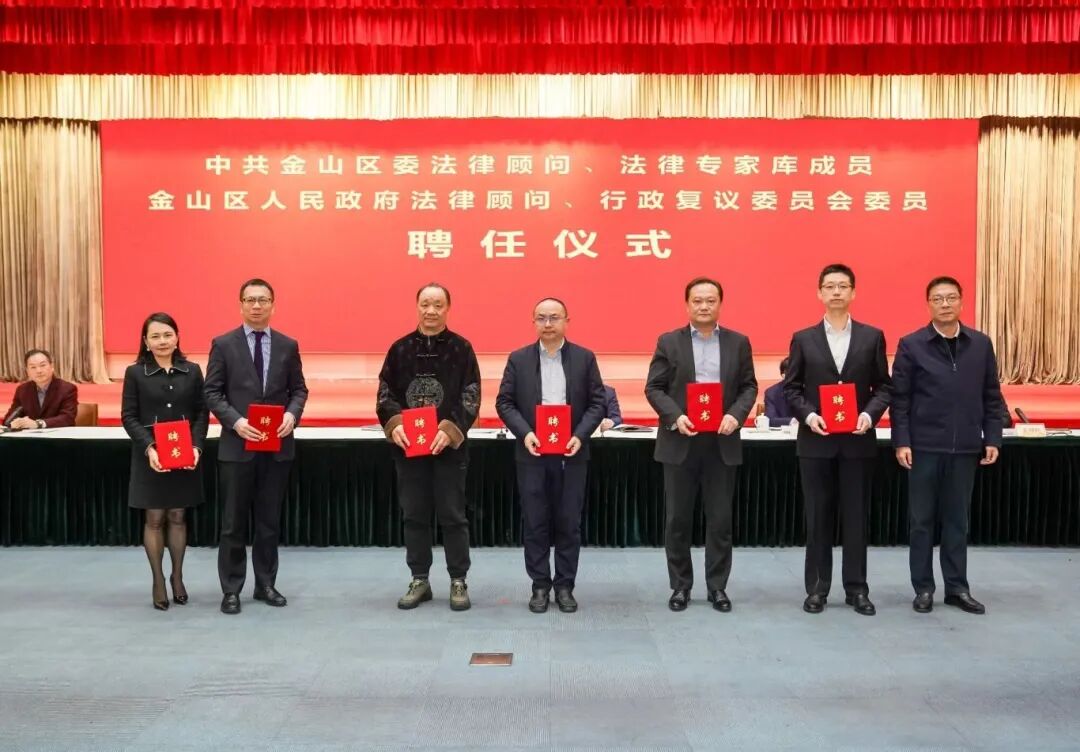 仪式上,区委办公室主任周兵宣读新一届区委法律顾问、法律专家库成员名单,区政府办公室主任王世敏宣读新一届区政府法律顾问人员名单,区司法局局长、行政复议局局长裴雄卿宣读新一届区政府行政复议委员会委员名单。邦信阳党委副书记、合伙人戴天骁律师受聘担任新一届中共金山区委法律专家库成员、金山区人民政府法律顾问。