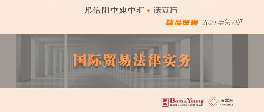 2021年6月8日(周二)18:30,邦信阳中建中汇·法立方精品课程第七期——“国际贸易法律实务”准时直播。邦信阳中建中汇合伙人李锋律师将围绕国际贸易业务进行深入分享,与邦信阳中建中汇合伙人王羽中律师、刘丽娜律师及侯国彬律师围绕主要问题展开交流讨论。