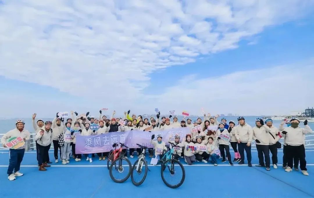 大寒节气方过,正是一年最冷的时候。此时,北疆银装素裹,南国却是一派生机。候鸟驻足越冬,三角梅花开正盛,暖阳打在脸上,温热照进心里。24日下午,合伙人们着好骑行装备,在厦门国际会议中心短暂热身之后,便前往被誉为“黄金海岸线”的厦门环岛路。这是一条绝美的海滨风景道路,蜿蜒曲折地环绕着整个厦门岛,是骑行者的天堂。合伙人们从观音山启程,穿过五通灯塔公园的历史光影,跨越五缘湾大桥的壮阔波澜,逆时针环绕五缘湾自行车道,最终在五缘湾华美的落日余晖里结束行程。一路上,大家一边欣赏连绵海岸线的自然风光,一边感受着温柔的海风拂面,且歌且行。