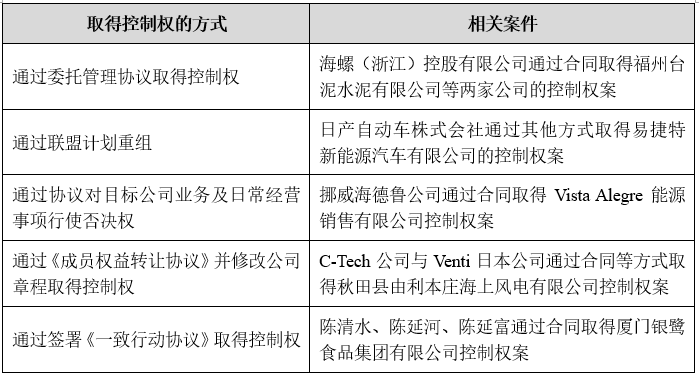 (注:上表归纳取得控制权的方式依赖于相关案件的《经营者集中简易案件公示表》,囿于相关信息有限,上表归纳仅作参考。)