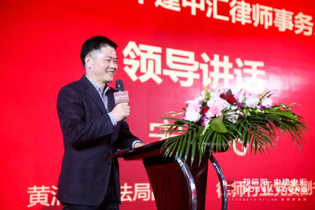 宋局长在大会上发言,他总结了黄浦区过去一年中对法律服务行业发展的支持工作,并对邦信阳中建中汇在黄浦区建设法治政府、营造良好营商环境,承担社会责任方面的积极参与和优秀表现予以肯定。