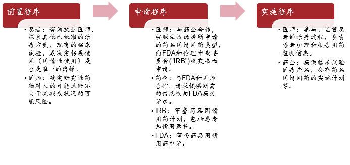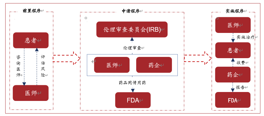 在评估患者后,医师可基于评估结论和患者意愿向FDA申请药品同情用药程序,其各阶段的衔接顺序和主体责任义务明确。