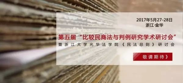 由上海财经大学法学院、浙江大学光华法学院、《学术月刊》杂志社主办,邦信阳中建中汇律师事务所及《浙江社会科学》杂志社、浙江省之江青年学者法学组协办的2017年第五届“比较民商法与判例研究学术研讨会”暨浙江大学光华法学院《民法总则》研讨会将于5月27日至28日在金华举行。届时,来自清华大学、中国人民大学、复旦大学、浙江大学、上海交通大学、南京大学、中国政法大学、华东政法大学、西北政法大学、上海财经大学、华东师范大学、四川大学、苏州大学、中南财经政法大学等国内二十余所高校的专家学者将汇聚一堂,以《民法总则》的颁布为契机,深入探讨与交流民事领域的疑难点和经典问题。