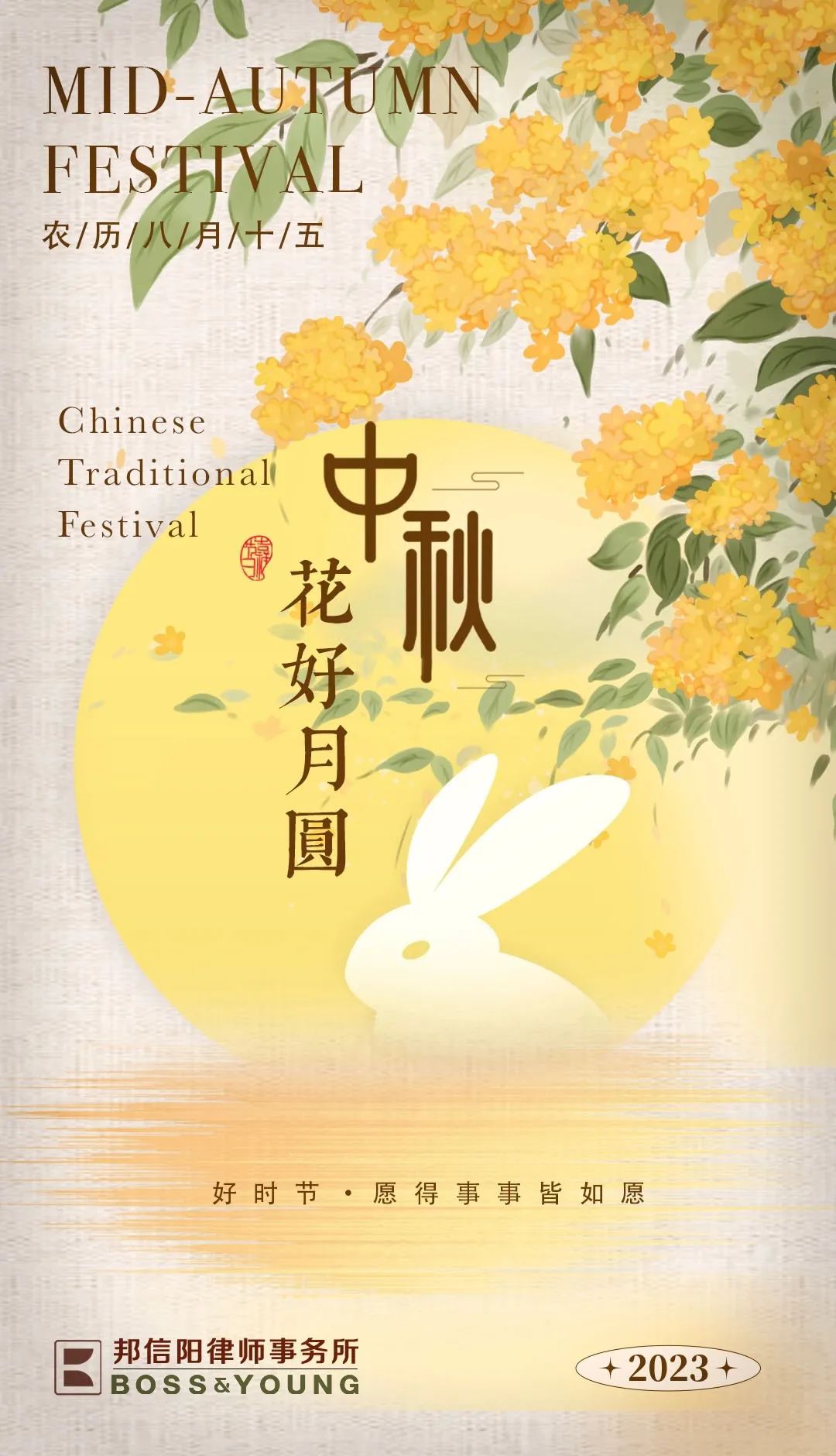 中秋节是中国农历八月十五日,也被称为“团圆节”或“月圆节”, 是一个重要的家庭团聚和感恩的时刻。在这个特殊的日子里,我们想向您表达我们的祝福和感激之情。