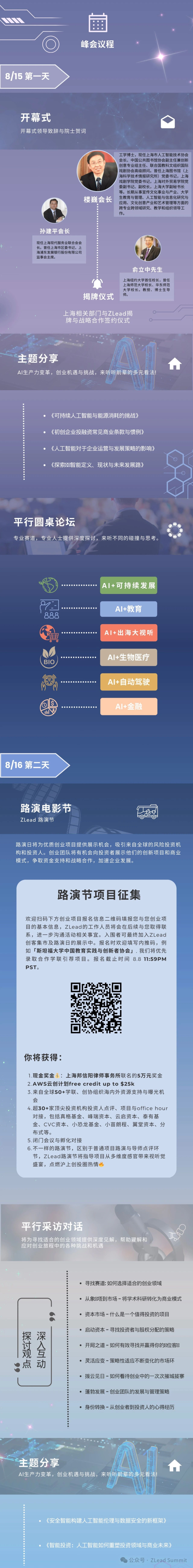 本次峰会致力于将全球科创视角新思带来上海,为青年学者提供学术成果的转化支持,给予创业者项目指导以及经验分享,促进海内外交流机遇,积极探索国外人才与项目在上海拓展以及国内项目的国际出海,多维度打造AIGC时代背景下的科创旅程。