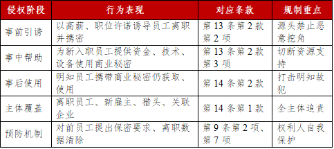 新规在制止“挖角”侵权方面也有突破,并且针对所谓的“挖角”侵权行为,新规定的打击对象从行业竞争对手扩展到猎头、中间企业等,我们结合实践中的风险管理注意事项汇总如下: