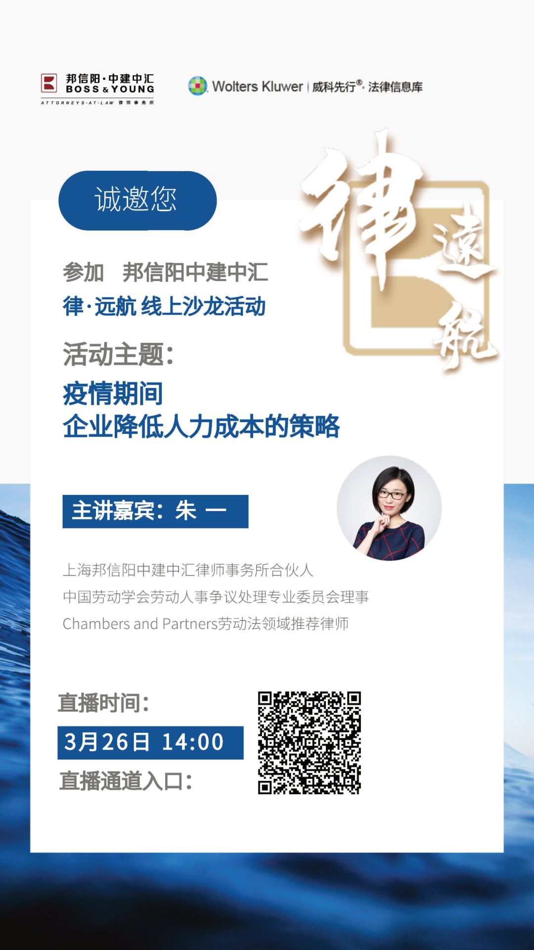 时间如白驹过隙,邦信阳中建中汇已走过25载风雨。不惧风雨,始终追求高品质法律服务,是我们多年来的坚持。2020年,邦信阳中建中汇与威科先行携手推出“律·远航”系列线上沙龙活动,聚焦企业最关心的行业话题和法律问题,以专业视角提供实务建议,同时也为行业间交流搭建平台。3月26日,我们邀请到邦信阳中建中汇合伙人朱一律师,为疫情期间苦恼于如何降低人力成本的企业打开人力资源管理新思路。