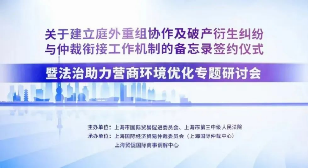 2024年12月17日,《关于建立庭外重组协作及破产衍生纠纷与仲裁衔接工作机制的备忘录》签约仪式暨法治助力营商环境优化专题研讨会在上海国际争议解决中心成功举办。上海市国际贸易促进委员会副会长、上海国仲副主任马屹和上海市第三中级人民法院副院长俞秋玮分别代表两家单位签署《备忘录》,双方未来将就庭外重组协作、破产衍生纠纷仲裁衔接等事宜开展合作,主要内容包括:
