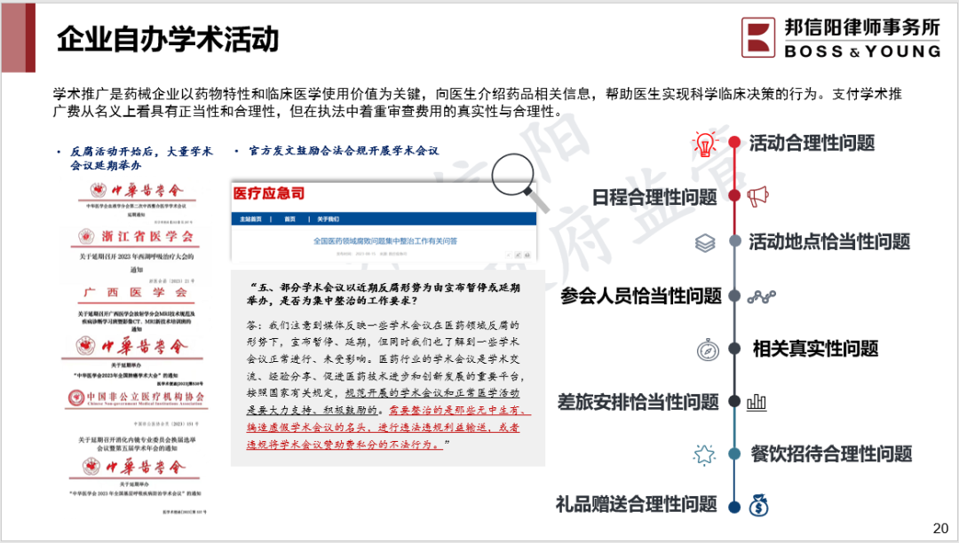 未能参加本次会议的企业内部法务、合规等内部专业人士如果想要获取本次会议使用的课件及历年反贿赂报告,可以使用工作邮箱发送邮件至邦信阳合规与政府监管业务组的邮箱索要课件及报告,邮箱地址:complianceandregulation@boss-young.com。我们的课件仅向企业客户提供,请在邮件正文告诉我们您的供职单位以及您的职位,我们会在收到邮件后尽快回复。