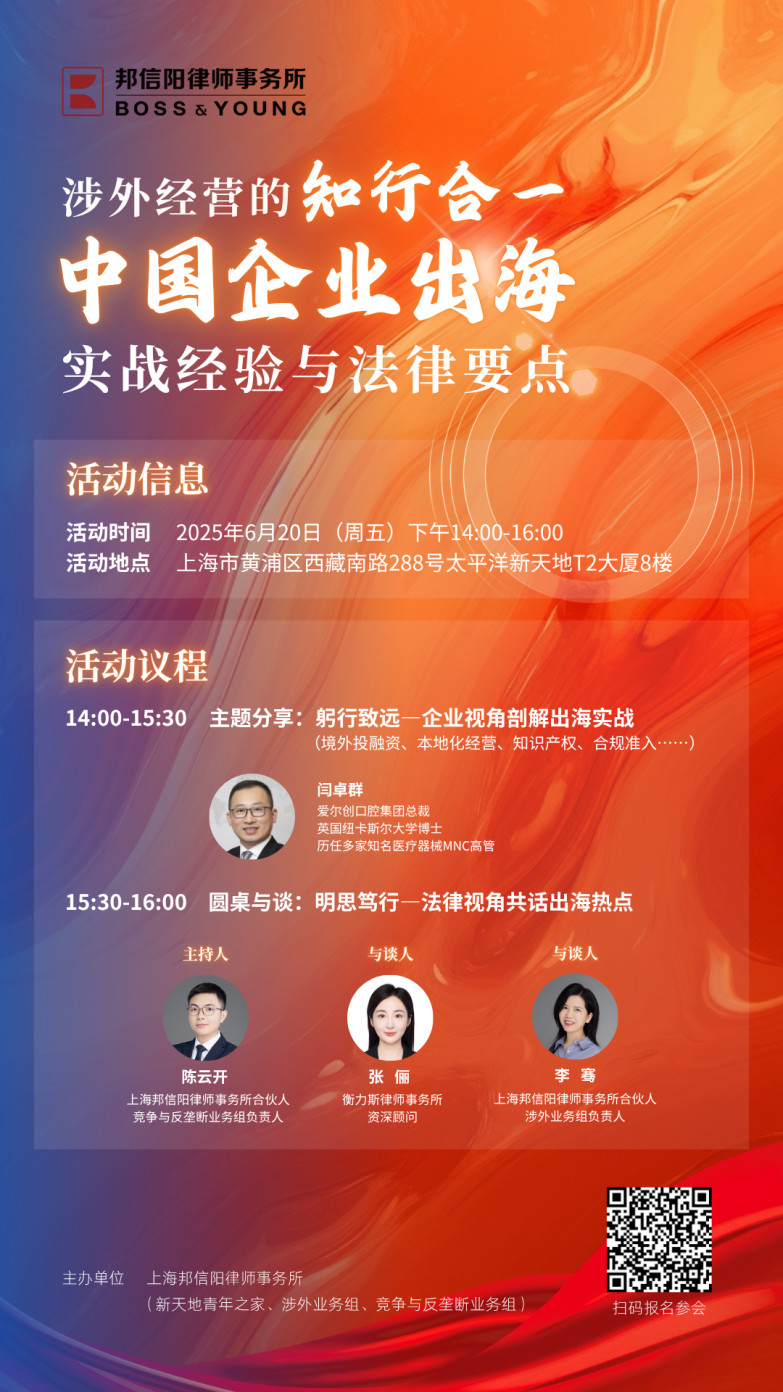 声明:本文仅代表作者本人观点,不得视为邦信阳律师事务所及律师出具的正式法律意见或建议。转载请注明来自“邦信阳律师事务所”公众号。如您有意就相关议题进一步交流或探讨,欢迎与我们联系,电话:+8621 23169090,邮箱:shanghai@boss-young.com