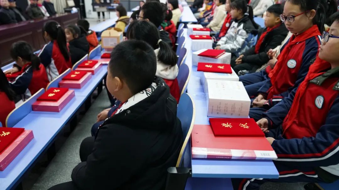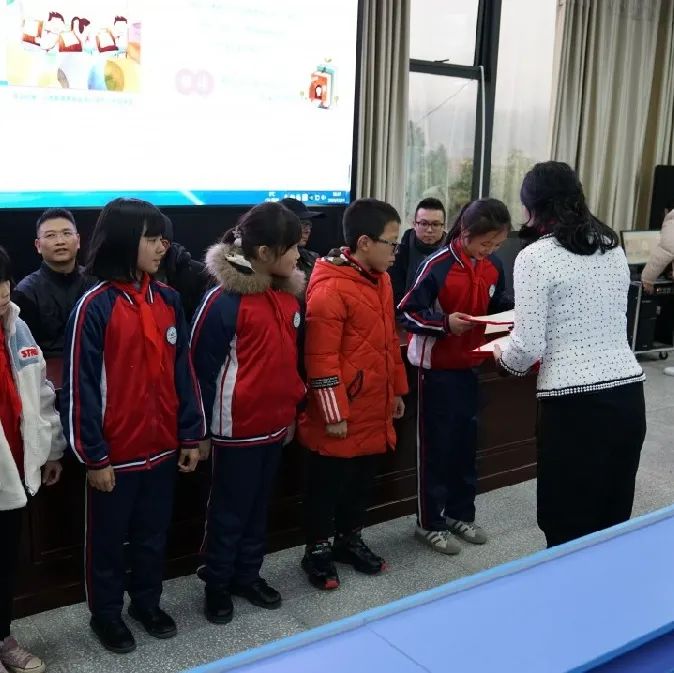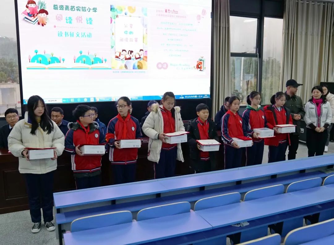 众所期待的颁奖环节终于到来,邦信阳中建中汇为参与本次征文活动的每一位学生都精心准备了奖品,有电子阅读器,有英语学习机,有触屏音箱,有书包文具套装,有通识图书套装,有课外读物……这些来自五百公里外的礼物,为这个寒冷冬天带来几分温暖。