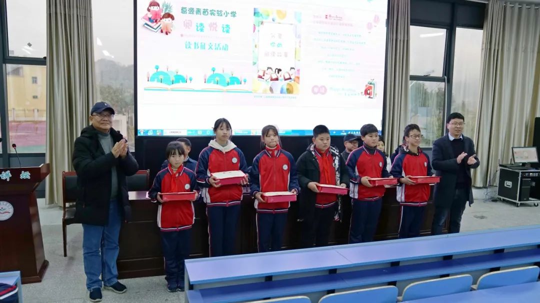颁奖典礼接近尾声,教体局滕国胜主任围绕“书籍与人生”给孩子们分享了他的读书历程。书籍给人带来的影响是长久而深远的,有时未必能快速地显性地展现出来,它是精神世界的食粮,熔铸于个体的成熟与心性中。“读百种书,行万里路”,葛源青苗实验小学的孩子们在知识的引领下、在善意的支持下一定会有光明的未来,等到那时,也一定记住将这份灯火传递出去,散播开来,照亮世界每一个角落。