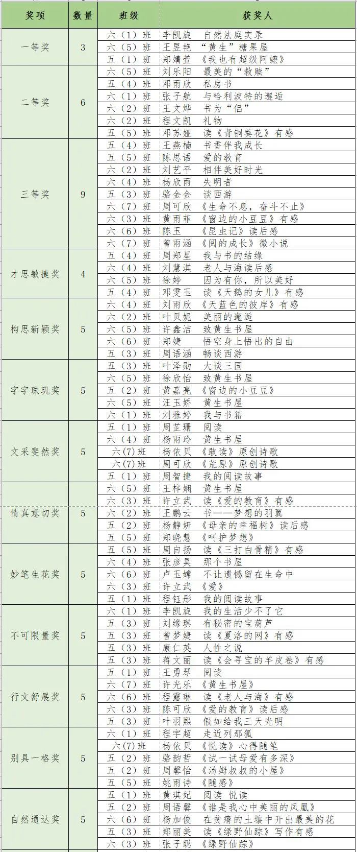 本次获奖名单如下