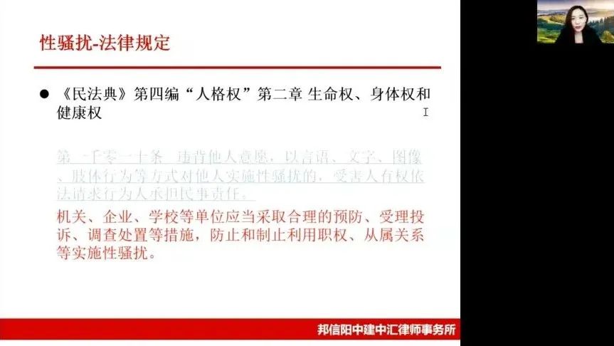 朱一律师详细阐释了反性骚扰政策的实体性内容,深入分析性骚扰的定义,性骚扰行为的列举,性骚扰的时间、空间范围,性骚扰的对象范围等。