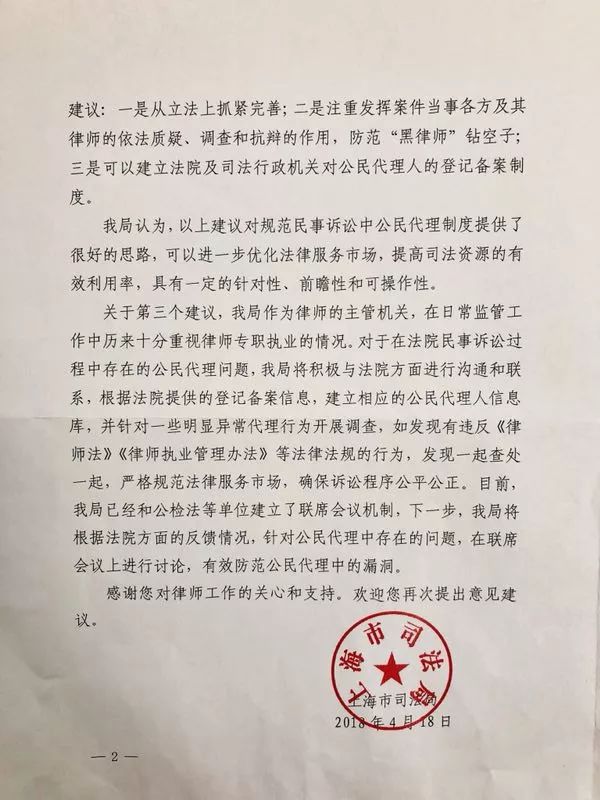 答复意见认为,陈律师的建议对规范民事诉讼中公民代理制度提供了很好的思路,可以进一步优化法律服务市场,提高司法资源的有效利用率,具有一定的针对性、前瞻性和可操作性。