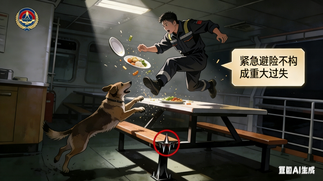 《民法典》第1245条允许因受害者故意或重大过失而减免责任。但船上空间有限,受害者躲避空间有限,法院通常认定船员的避让行为属于正常反应,不构成过错。郑某跳上餐桌摔倒,法院很可能认为这是在紧急状态下的合理避险,而非重大过失。