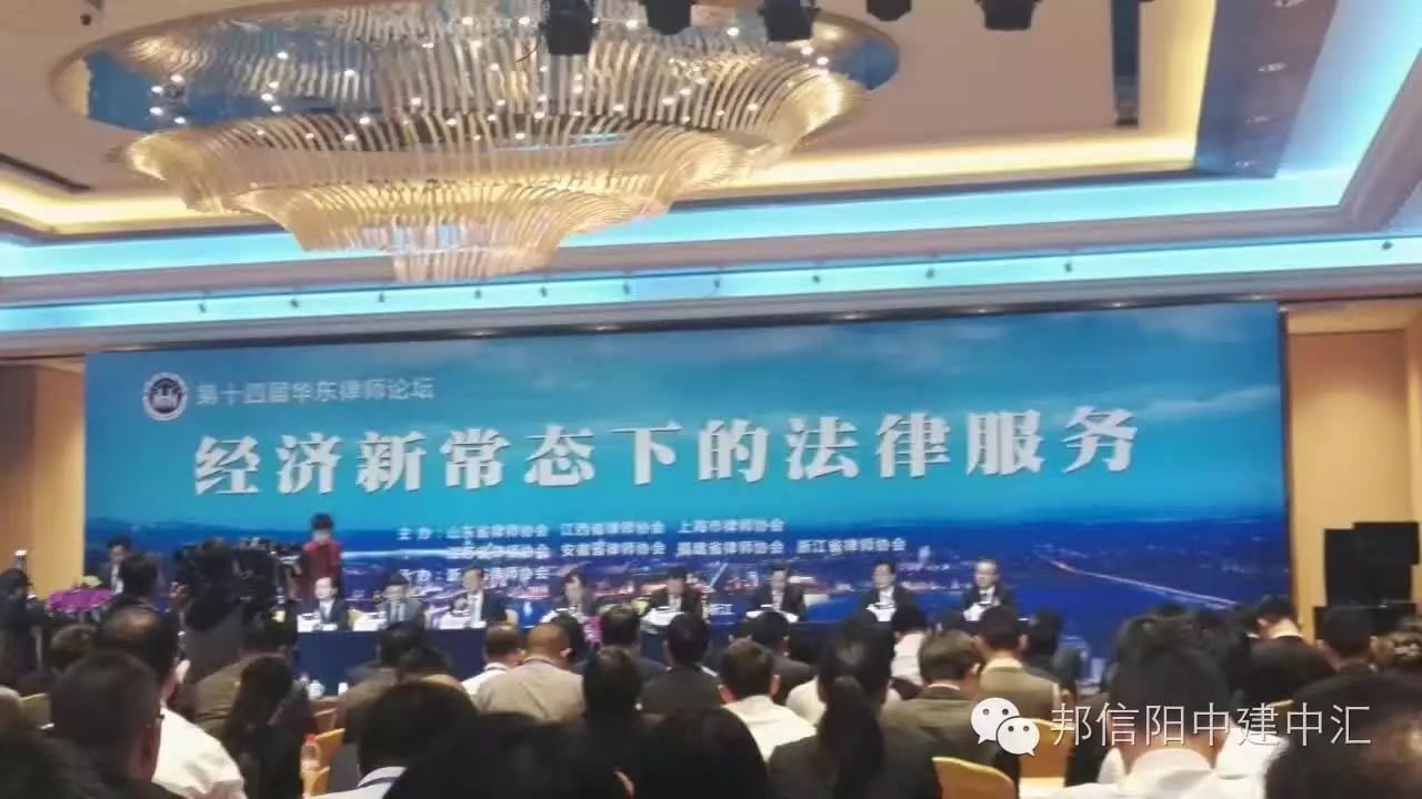 2016年10月18日至19日,由上海市律师协会与江苏、浙江、安徽、福建、山东、江西六省律师协会联合主办,浙江省律师协会承办的第十四届华东律师论坛在浙江省杭州市隆重举行。来自华东六省一市的近200名律师代表齐聚西子湖畔,以文会友,共商法治,共谋发展。论坛开幕式由浙江省律师协会会长郑金都主持,中华全国律师协会会长王俊峰、浙江省政协副主席王建满出席开幕式并致辞。