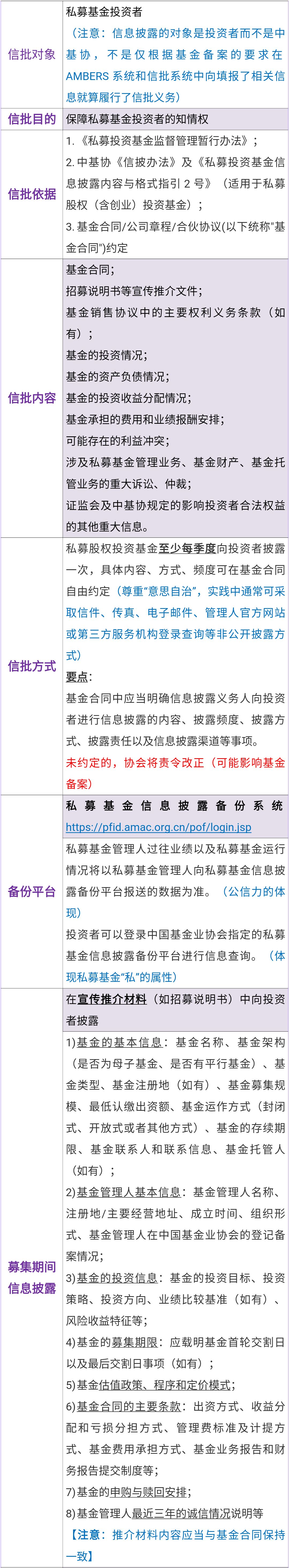 按照《信披办法》第五条要求,私募基金信息披露报告应当备份至协会指定的信息披露备份平台。此后,随着私募基金合同指引和适用于私募股权(含创业)投资基金的《私募投资基金信息披露内容与格式指引2号》相继发布实施、私募基金信息披露备份系统(https://pfid.amac.org.cn,以下简称“信披系统”)功能不断更新完善,现阶段私募股权投资基金的信息披露自律监管框架已基本构建成形,相关制度和具体操作规范也较为明确。笔者现结合相关规定对私募股权基金信息披露板块的合规要点作一梳理。