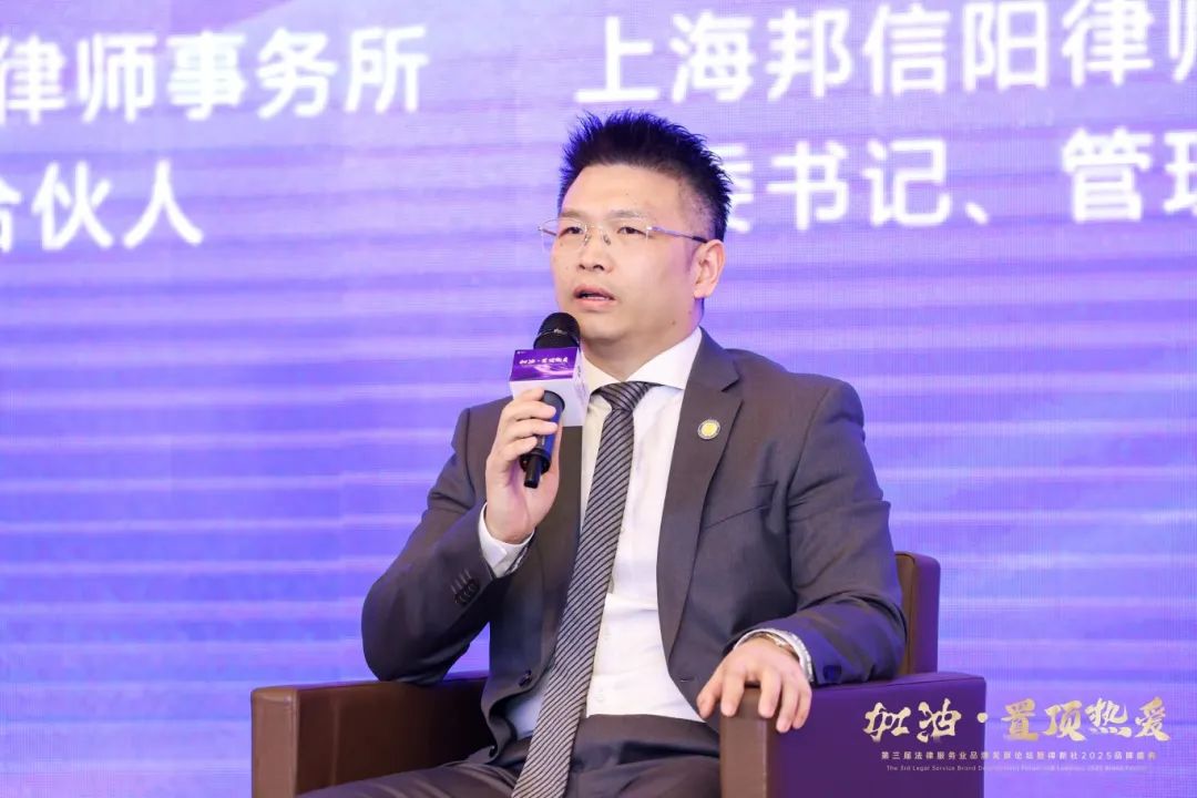 上海邦信阳律师事务所党委书记、管理合伙人赵亮波律师受邀出席此次盛典,作为嘉宾参与“管理突围:创新之路与传承之道”圆桌论坛环节的讨论。