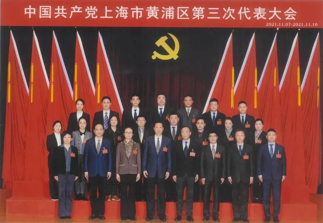 2021年11月,赵亮波律师作为中国共产党上海市黄浦区第三次代表大会司法行政系统党代表,参加区第三次代表大会。(第一排右一)