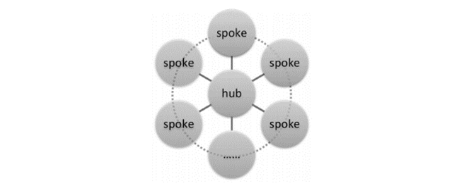 轴辐协议的样态初现,即C作为轴(hub),A与B作为辐(spoke),分属于不同市场。辐与轴之间达成平行的纵向协议(垄断协议二分法体系下)。辐之间未形成横向协议(单一的共谋行为[2],或意思联络),即轮缘(rim),但作出了一致行为。