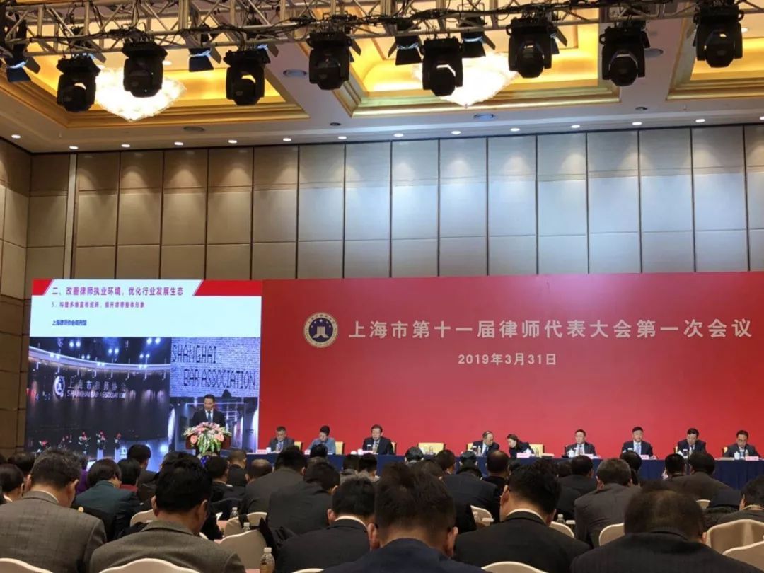 2019年3月31日,上海市第十一届律师代表大会第一次会议在上海国际会议中心隆重召开,中共上海市委常委、常务副市长、市政府党组副书记、市委政法委书记陈寅,上海市高级人民法院党组书记、院长刘晓云,上海市人民检察院党组书记、检察长张本才,上海市国家安全局党委书记、局长董卫民,上海市司法局党委书记、局长陆卫东,全国律师行业党委委员、中华全国律师协会副会长蒋敏,上海市司法局党委副书记、上海市律师行业党委书记刘卫萍等领导出席了会议。来自全市律师行业的300余名律师代表参加了此次盛会。