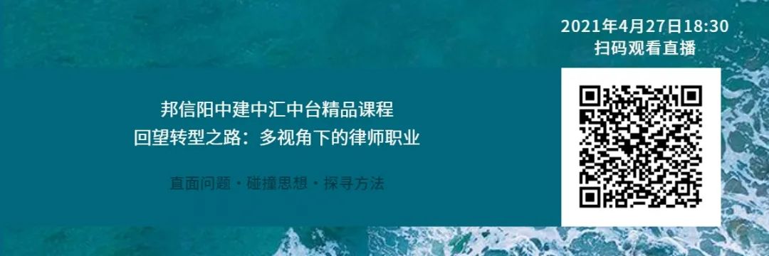 跨行业律师对于执业有何特殊心得或技巧?不同职业群体看待法律问题的视角是否存有差异?2021年4月27日,邦信阳中建中汇中台精品课程2021年第四期“回望转型之路:多视角下的律师职业”准时开播。本次课程由邦信阳中建中汇合伙人施磊律师主持,邦信阳中建中汇合伙人田小丰律师、郑峻律师作为转型从事律师行业的代表,结合自身从业经历,围绕不同视角下的律师执业以及职业转换的心路历程展开对话分享。(以下由邦信阳中建中汇徐鲁嘉律师整理)
