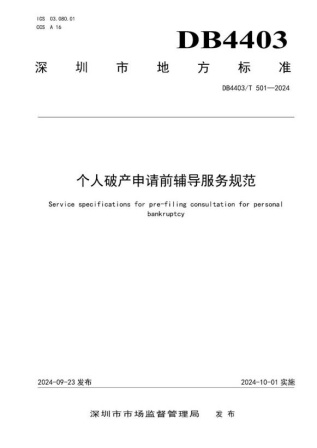 10. 全国首个破产领域地方标准《个人破产申请前辅导服务规范》