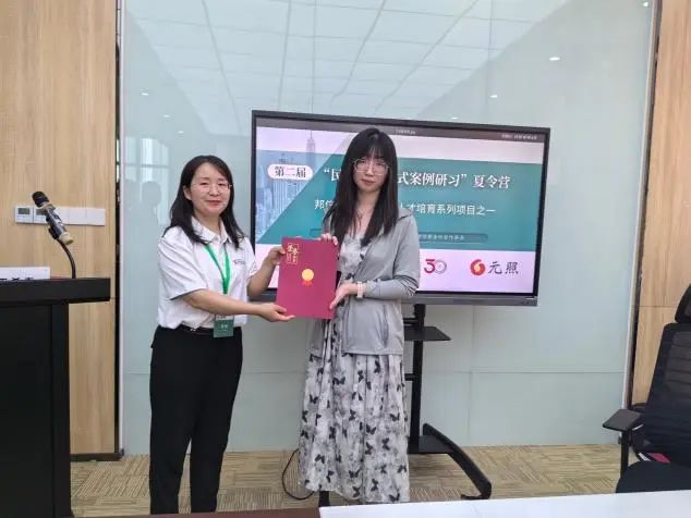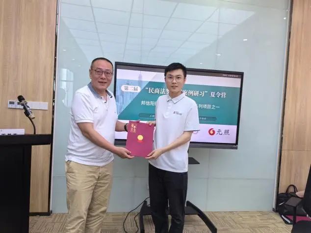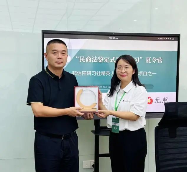 为表示元照读书馆(武汉)对本次夏令营活动支持的感谢,邦信阳武汉办公室向元照读书馆(武汉)负责人赠予合作方纪念牌。