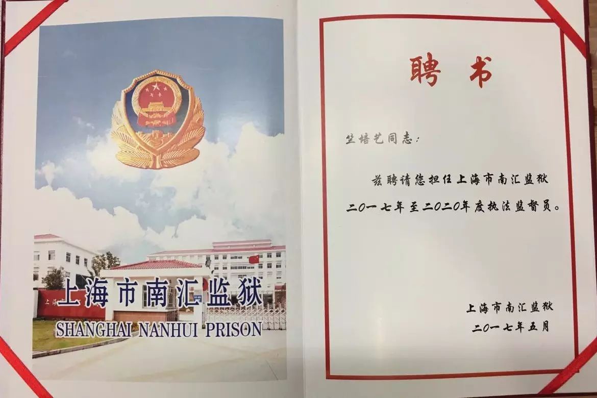 竺律师此次担任南汇监狱执法监督员,将在南汇监狱进一步深化狱务公开、建设法治监狱、提升监狱的执法形象并推进执法规范化建设方面,提供法律服务、贡献力量。