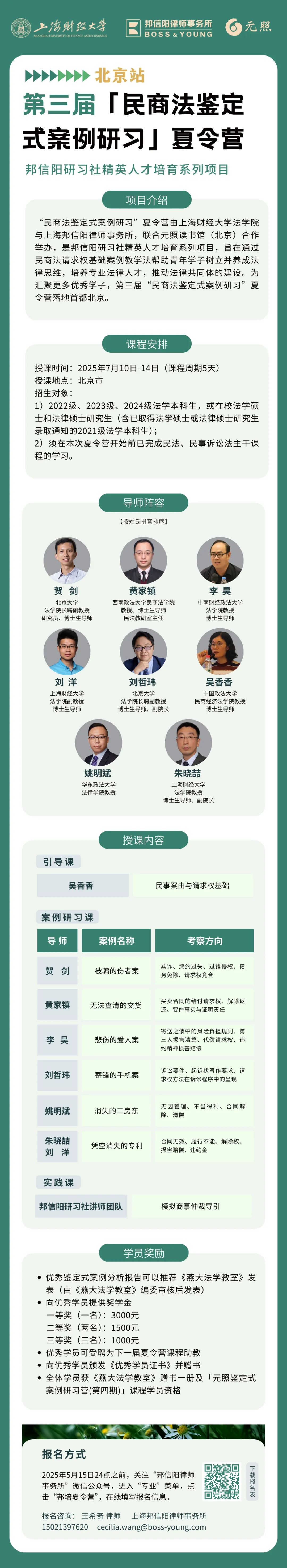 第三届“民商法鉴定式案例研习”夏令营【北京站】将于5月15日报名截止,快来报名吧!