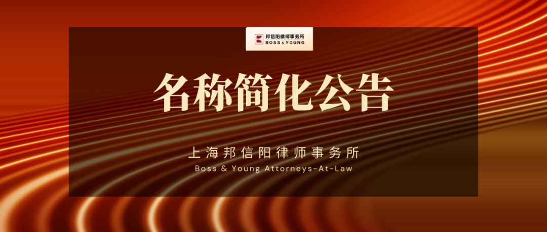 经上海市司法局批准,“上海邦信阳中建中汇律师事务所”简化为“上海邦信阳律师事务所”,英文名称仍为”Boss & Young Attorneys-At-Law”。