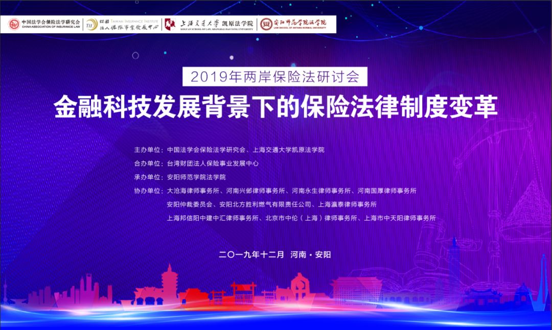 2019年12月6日,第六届两岸保险法研讨会在中国古都河南安阳举办。本次研讨会的主题为“金融科技发展背景下的保险法律制度变革”,由中国法学会保险法学研究会、上海交通大学凯原法学院联合主办,台湾财团法人保险事业发展中心合办,安阳师范学院法学院承办,上海邦信阳中建中汇律师事务所参与协办。