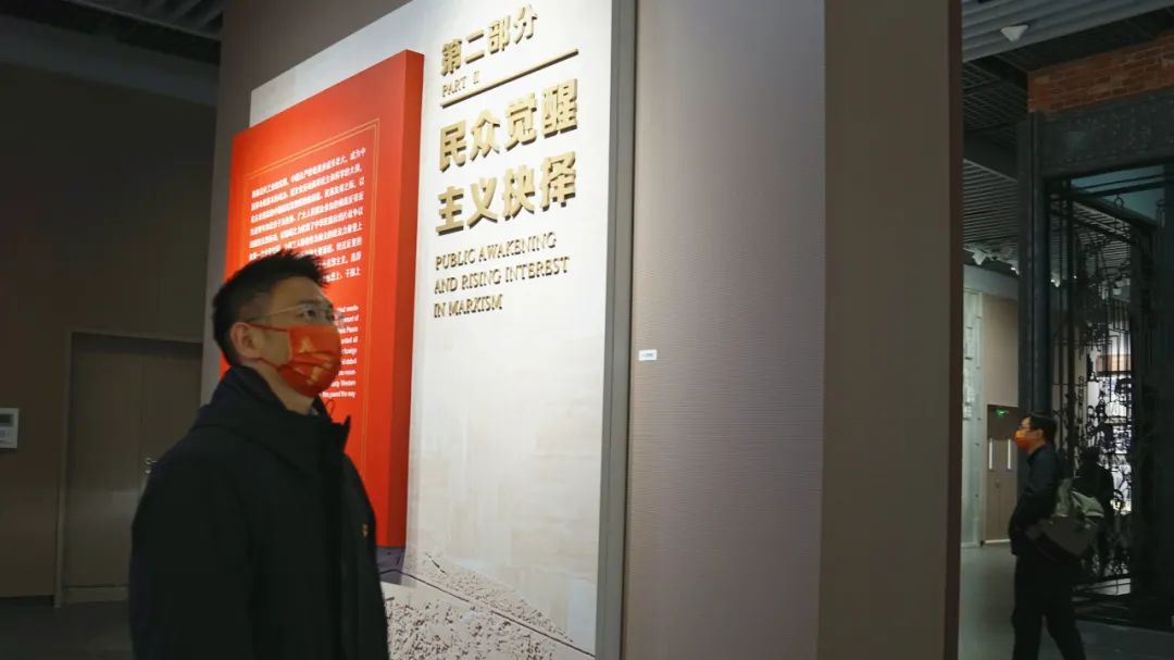 专题党课结束后,走进中共一大纪念馆,“伟大的开端——中国共产党创建历史陈列”展厅以“初心使命”贯穿全篇,展览循着时间脉络分为7个版块,全面系统地展示了中国共产党的诞生历程。