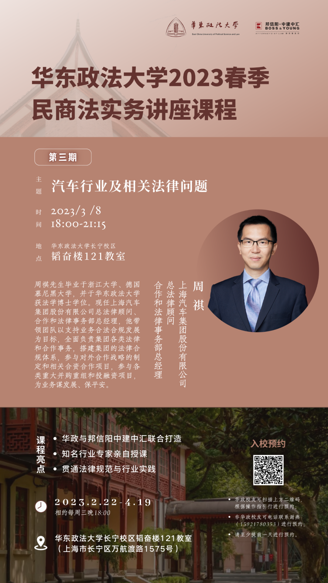 讲座预告 | 华东政法大学“民商法实务课程”第五期第三课:汽车行业