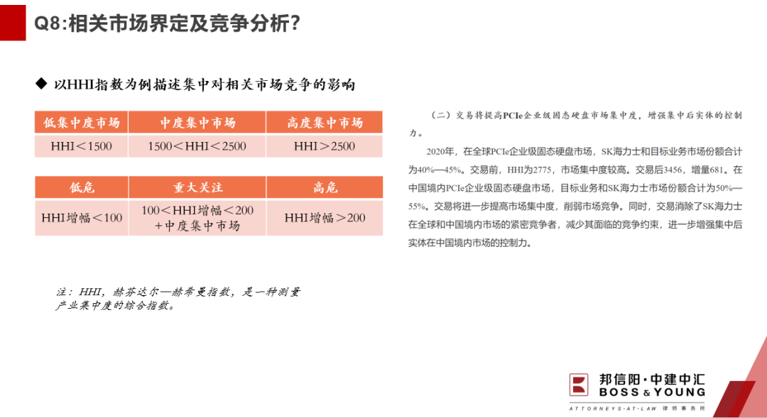 审查实践中,在考察相关市场集中度时,一般会参考使用HHI指数进行评估: