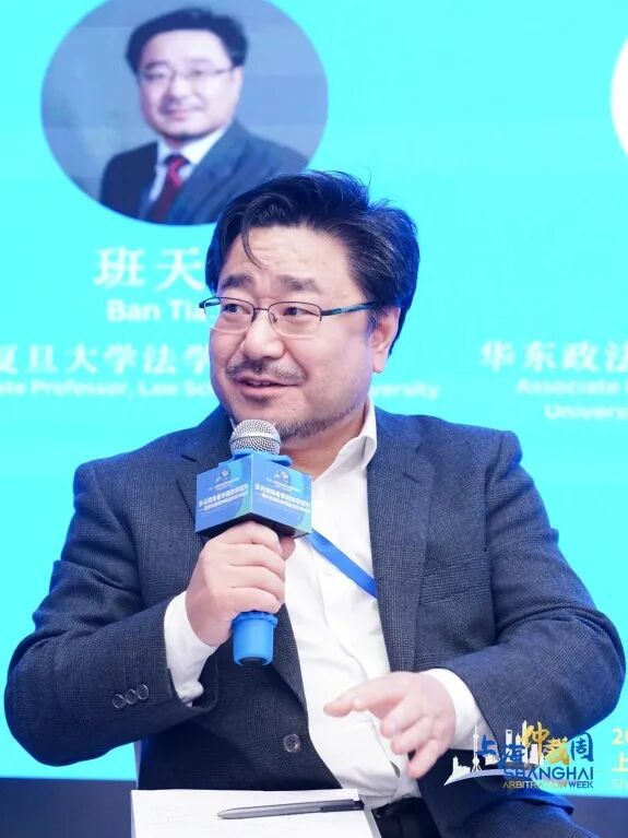 第一场圆桌讨论中,主持人邦信阳律师事务所合伙人王羽中律师,围绕“从要件事实理论引入,以实体视角看仲裁质效提升”这一主题,与复旦大学法学院副教授班天可、华东政法大学法律学院副教授贺栩栩、瑞士仲裁协会中国区代表及功承瀛泰律师事务所高级合伙人姜明泽、上海国际经济贸易仲裁委员会(上海国际仲裁中心)仲裁员及上海仲裁协会贸易业务研究会委员时明清展开深入讨论。